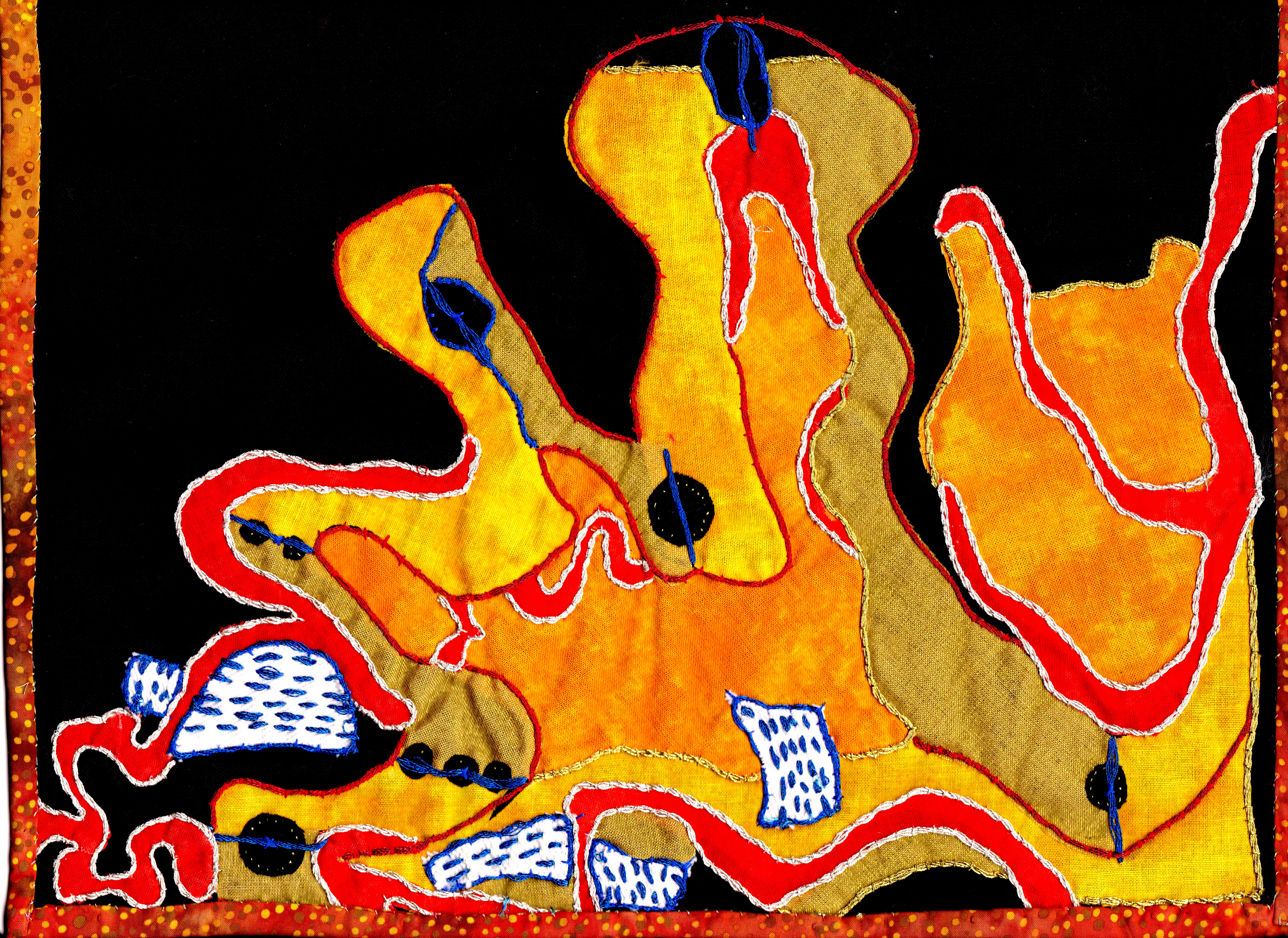 16″x20″ Silk on polyester, metallic and cotton thread and floss
